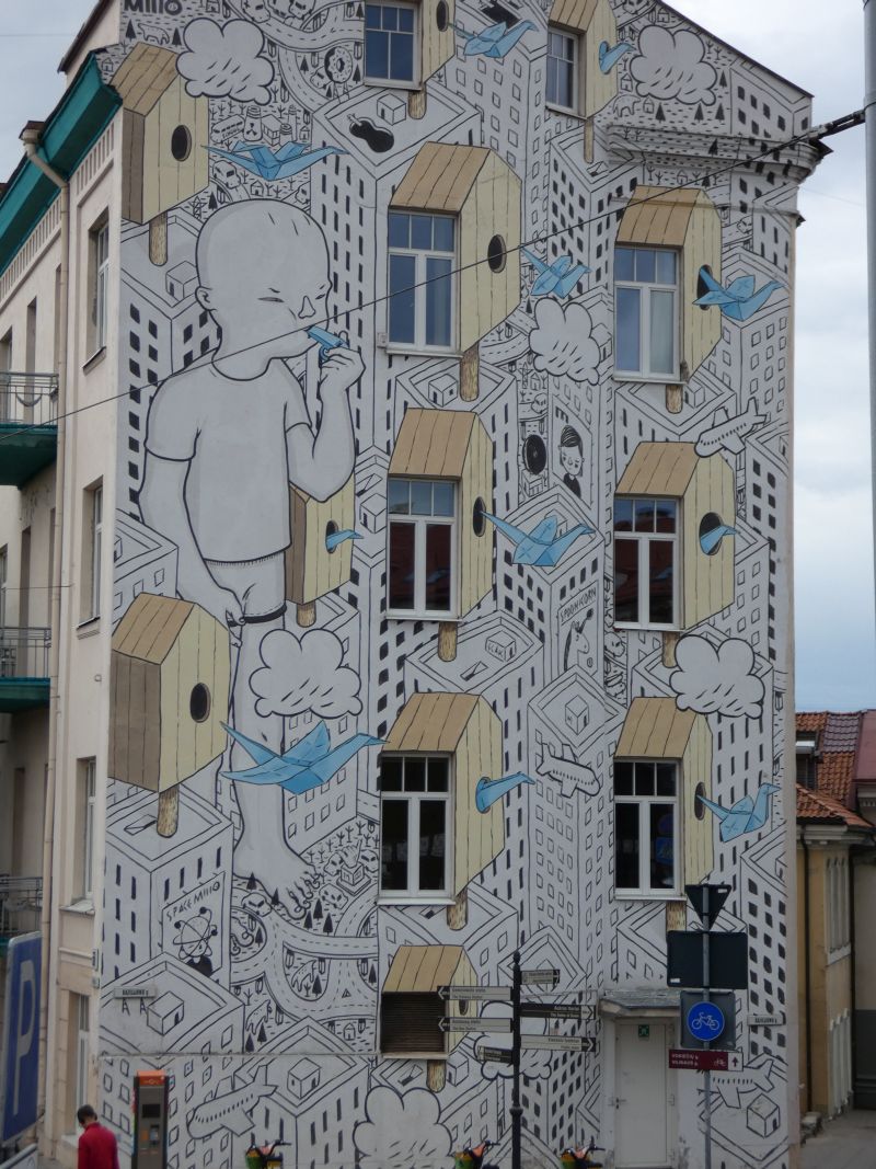 Nach etwa 4 Std. Fahrt erreichen wir den nächsten Campingplatz, er liegt nur 6 km von der Altstadt Vilnius entfernt. Hier ist schon deutlich mehr los, die Wohnmobile stehen relativ dicht und nach einem kurzen „Schock“ über so viele Menschen suchen wir uns einen Platz. Wir sind gedanklich noch nicht wieder in dichter besiedelten Gebieten angekommen. So viele Menschen auf einem Haufen, viele sprechen deutsch und alle können englisch. Wenigstens regnet es nicht und die Ausstattung des Campingplatzes ist auch sehr in Ordnung und alles ist sauber. Da es erst früher Nachmittag ist als wir mit Aufstellen, wegräumen/umräumen und co fertig sind, fahren wir noch mit dem Bus in die Altstadt. Der erste Weg führt uns in die Markthalle, leider sind die Aussteller bereits dabei wegzuräumen, also schauen wir nur kurz durch. Pixel schafft es sich von einem Fleischstand eine ganze Wurst zu erbetteln mit lieb schauen und wir verlassen die Halle wieder. Es geht auf direktem Weg in die Fußgängerzone der Altstadt und wir flanieren durch die Gassen. Es ist für uns wirklich sehr ungewohnt, dass es Souvenirläden an jeder Ecke gibt, die Leute gut Englisch können und wir überall mit Pixel hinein dürfen.